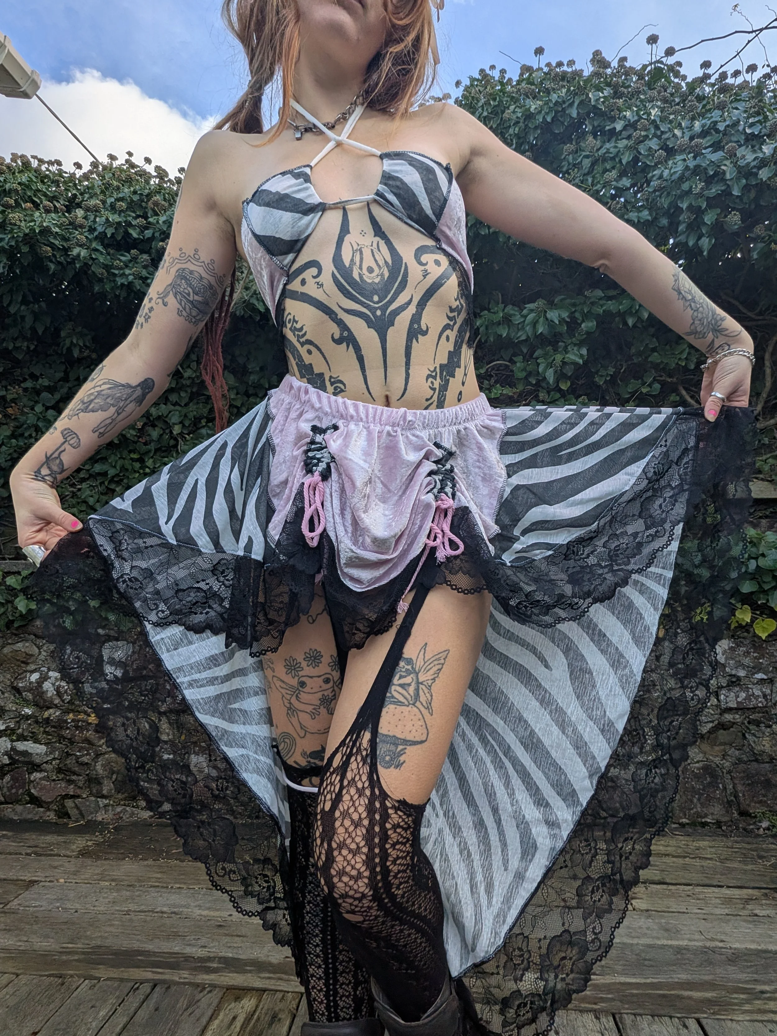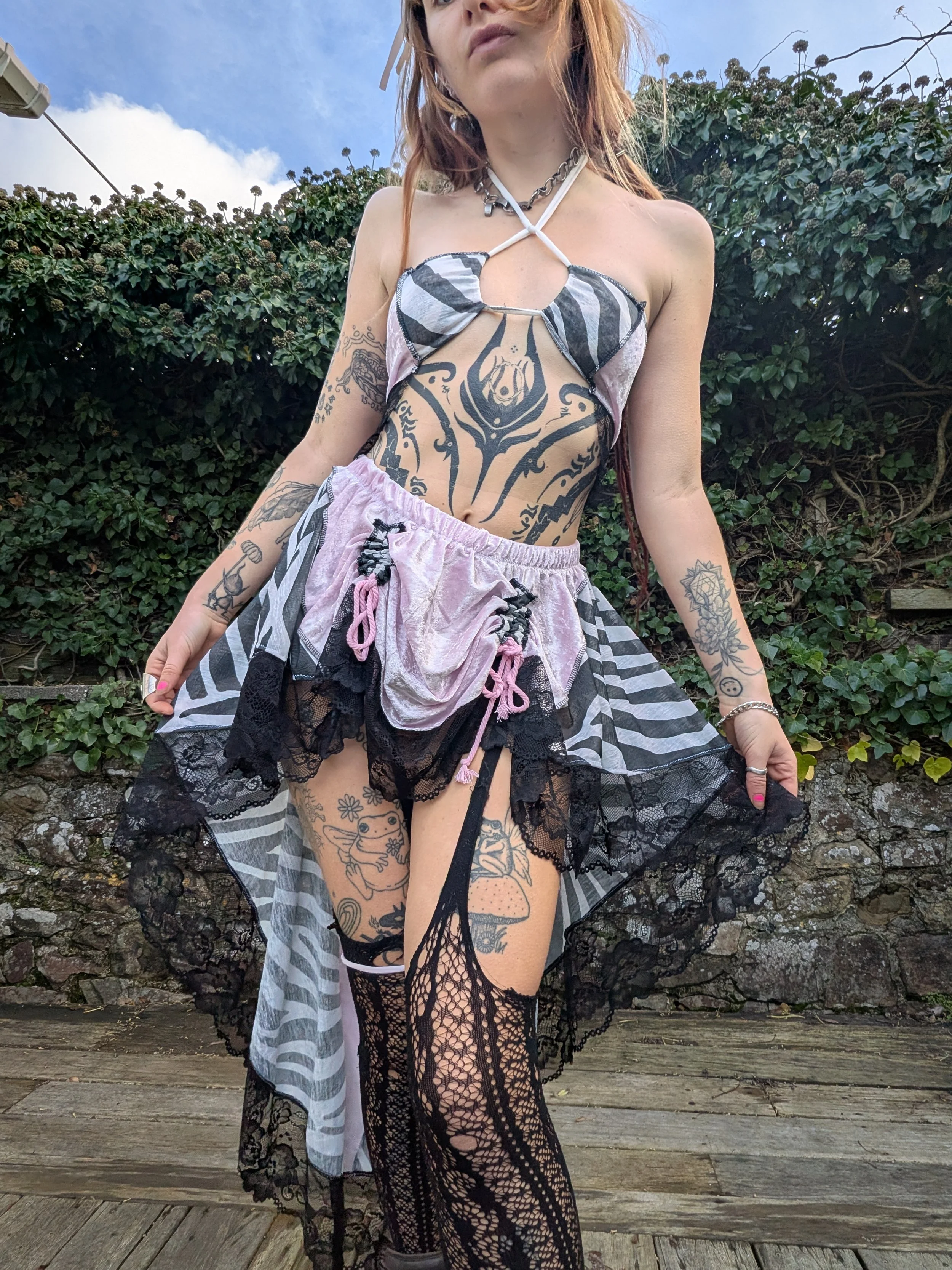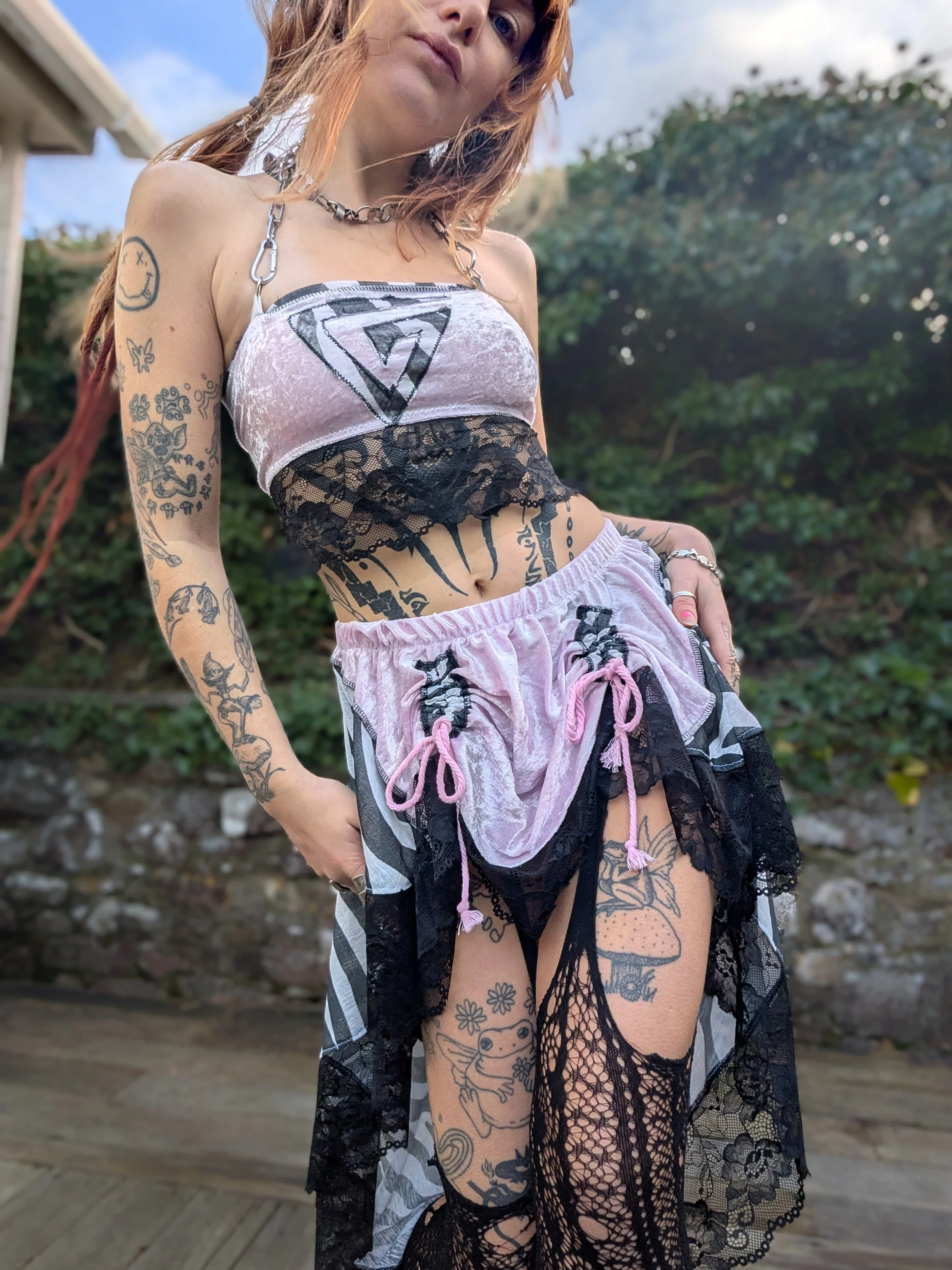 Set includes adjustable drawstring skirt & multiway top