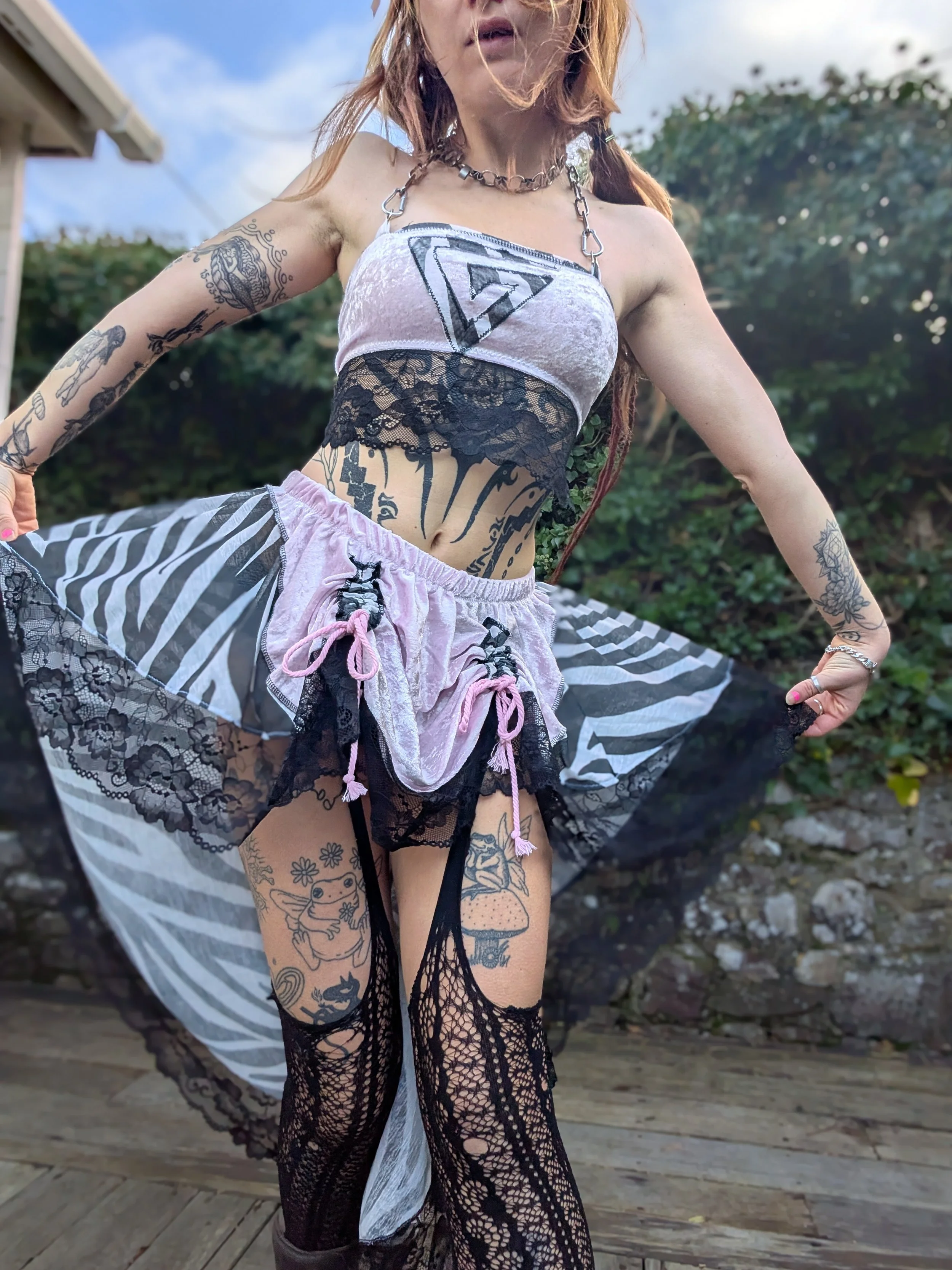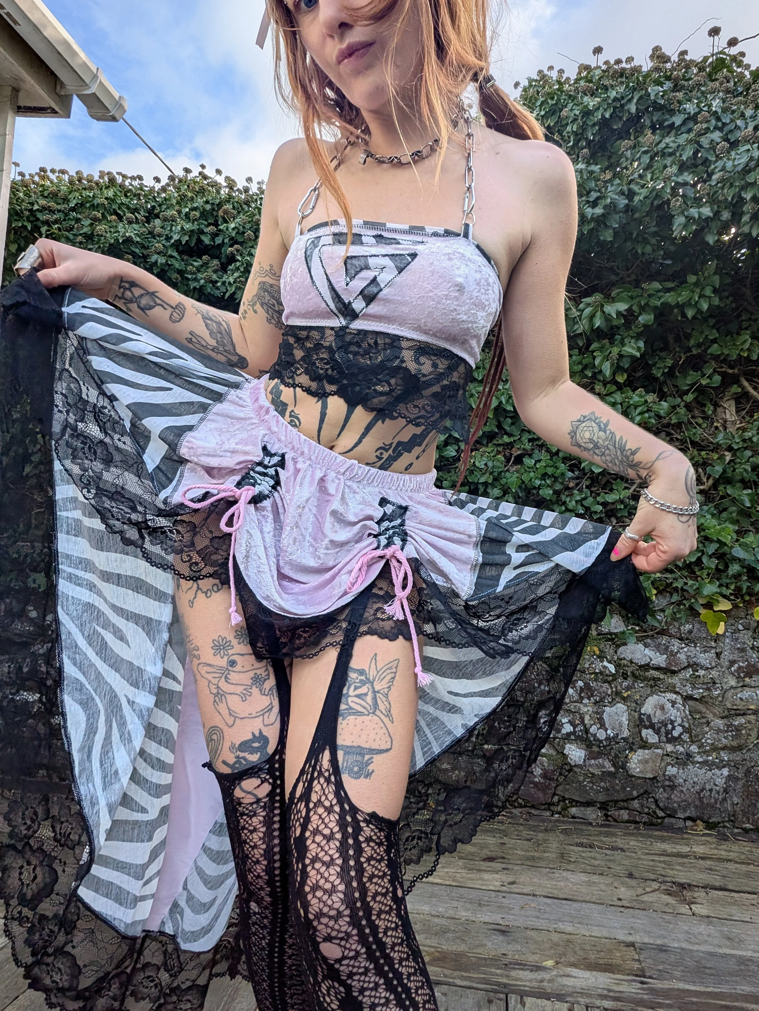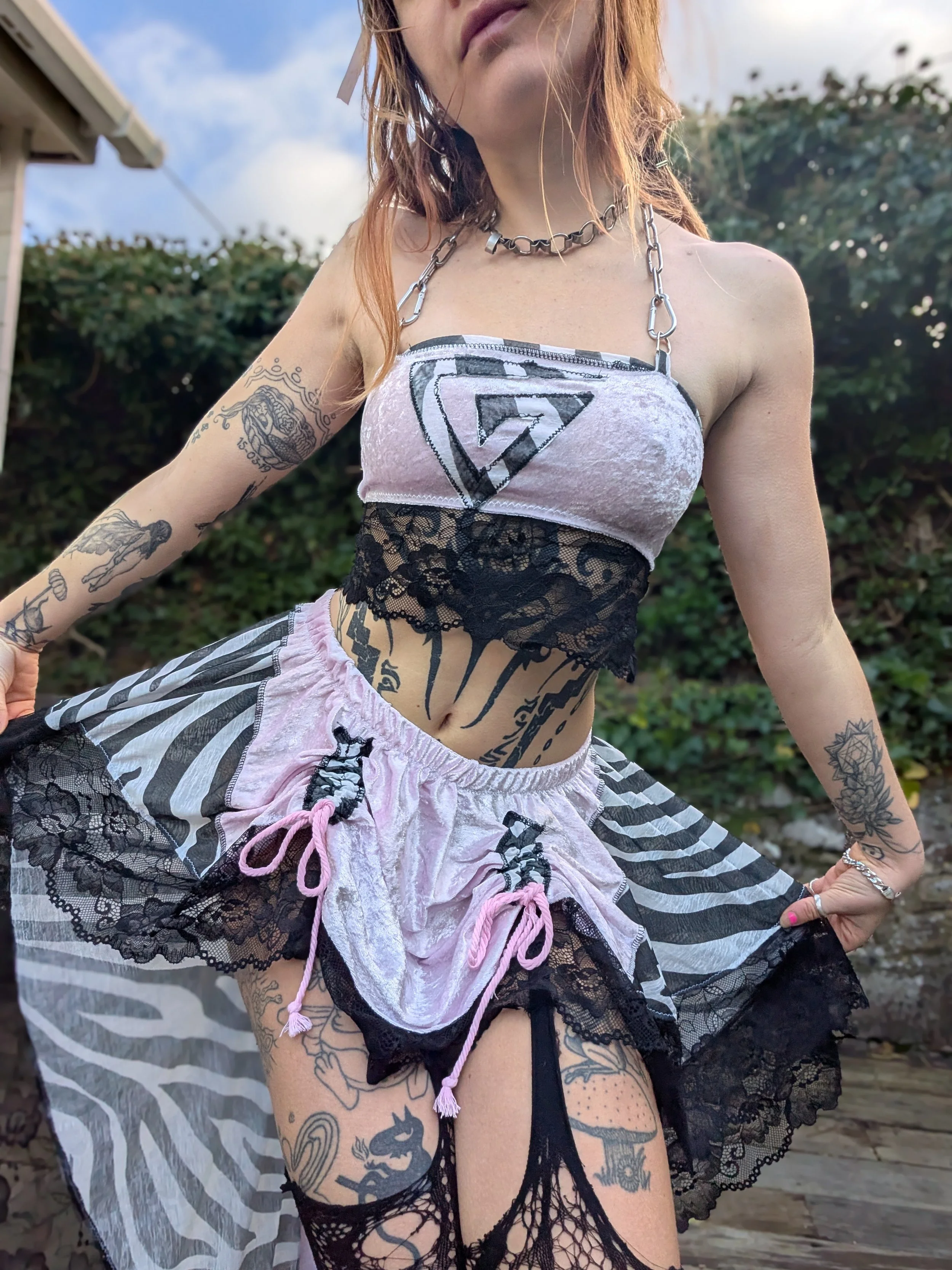 Set includes adjustable drawstring skirt & multiway top