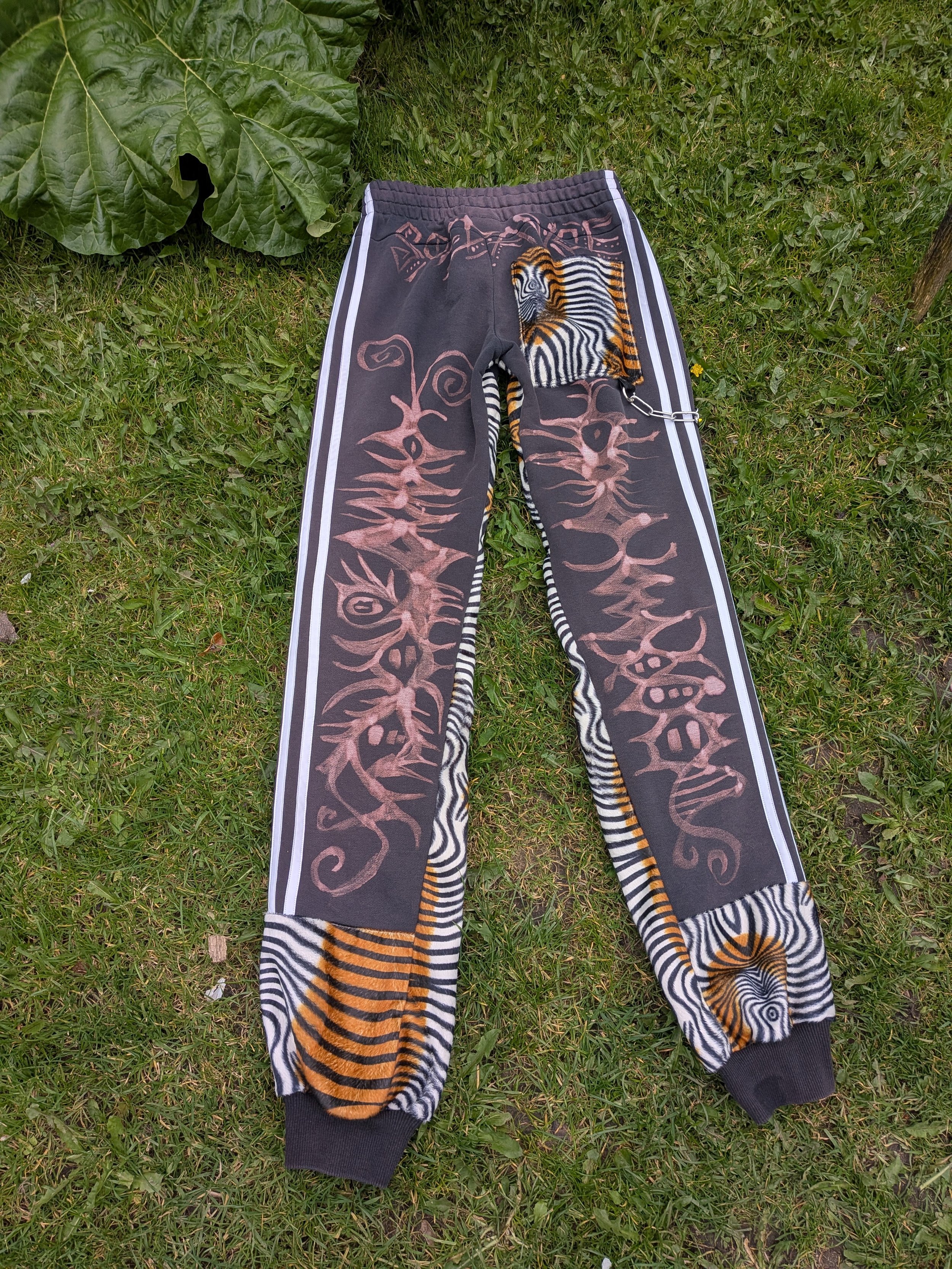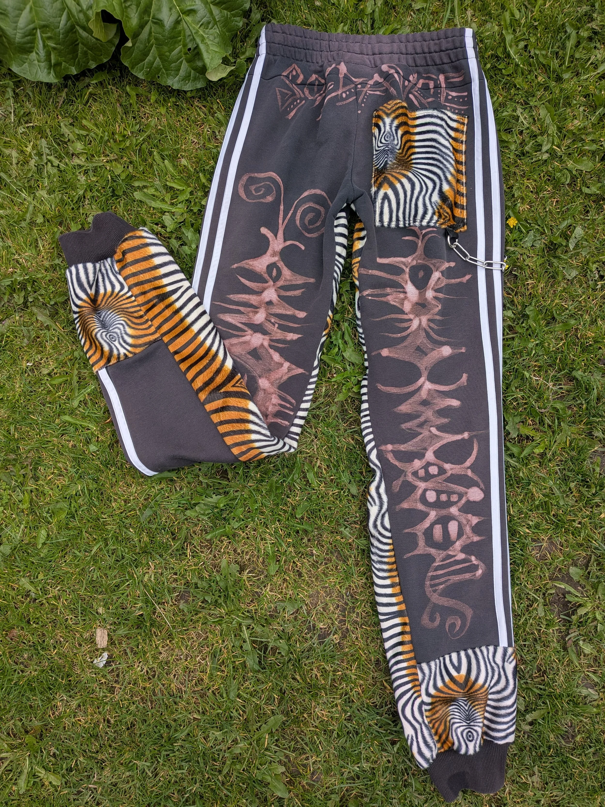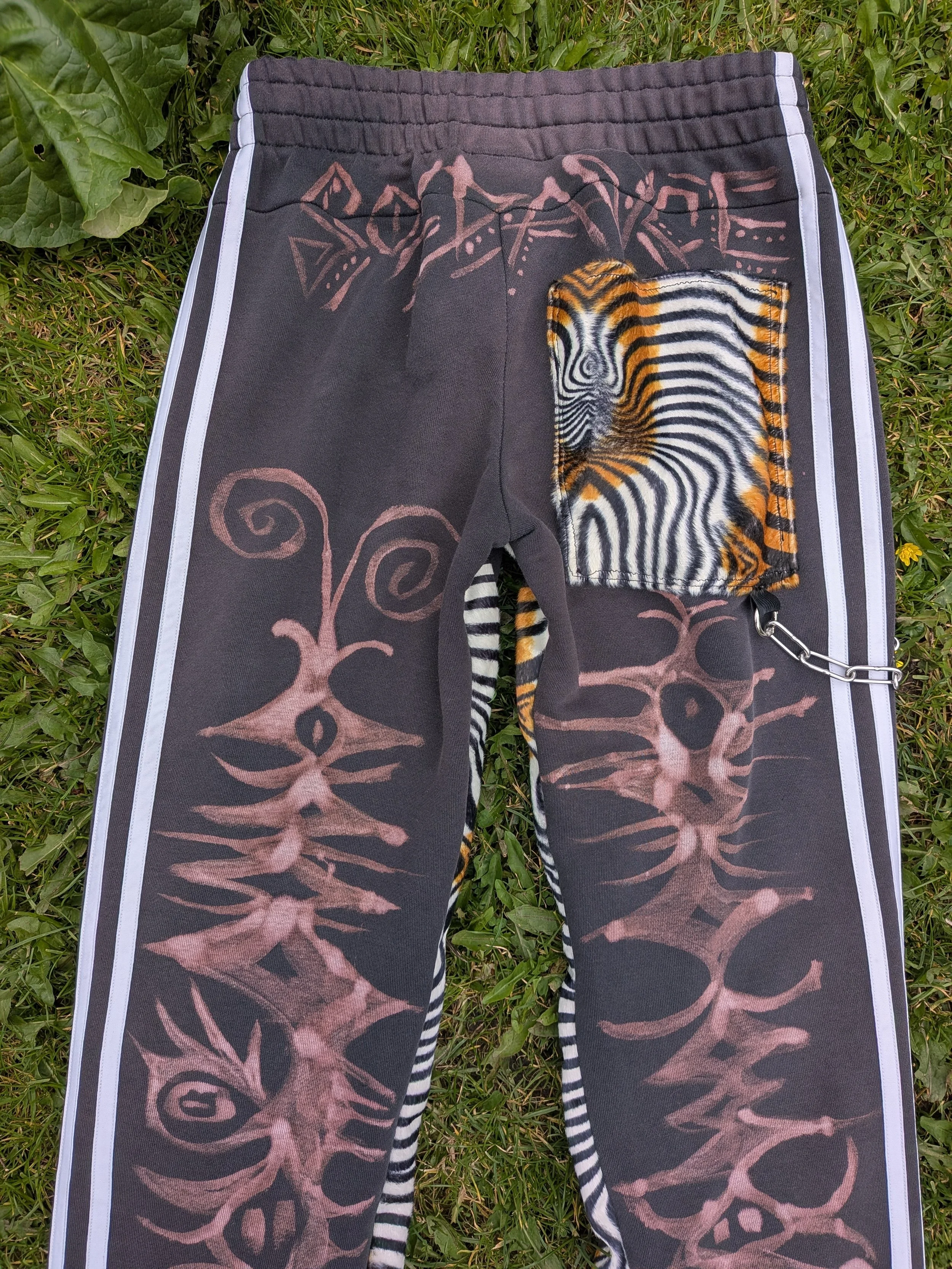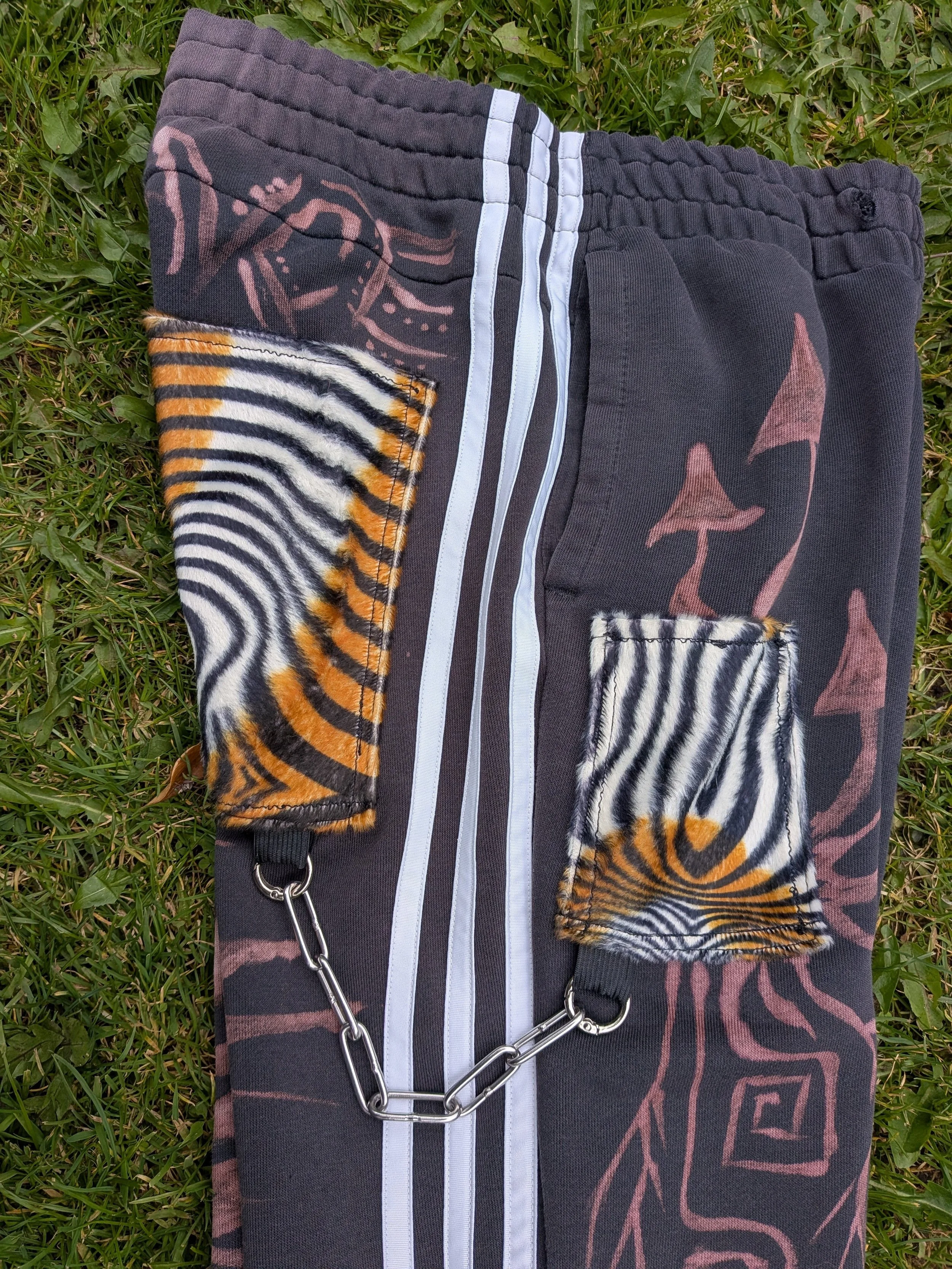 Faux trippy tiger skin & hand painted soundsystem & mushroom tribal art with soldance tag spellout across the back 🔊🌿
