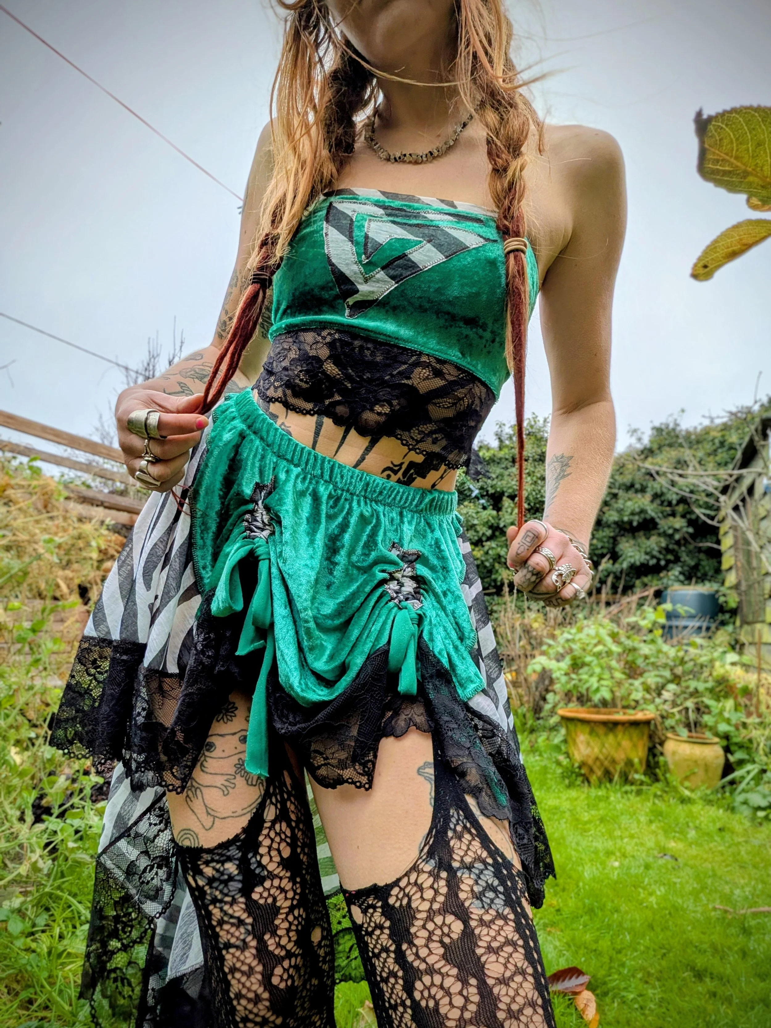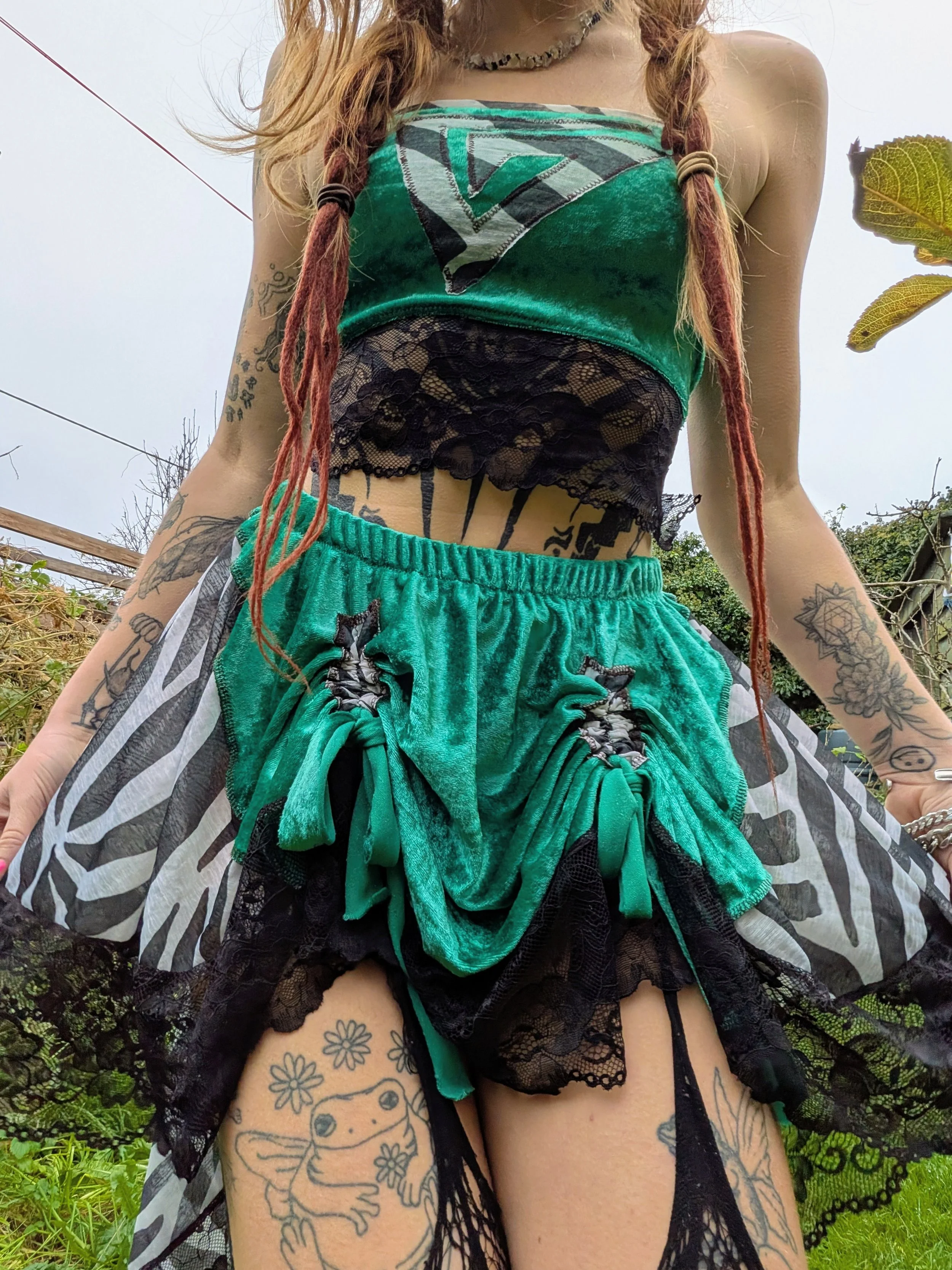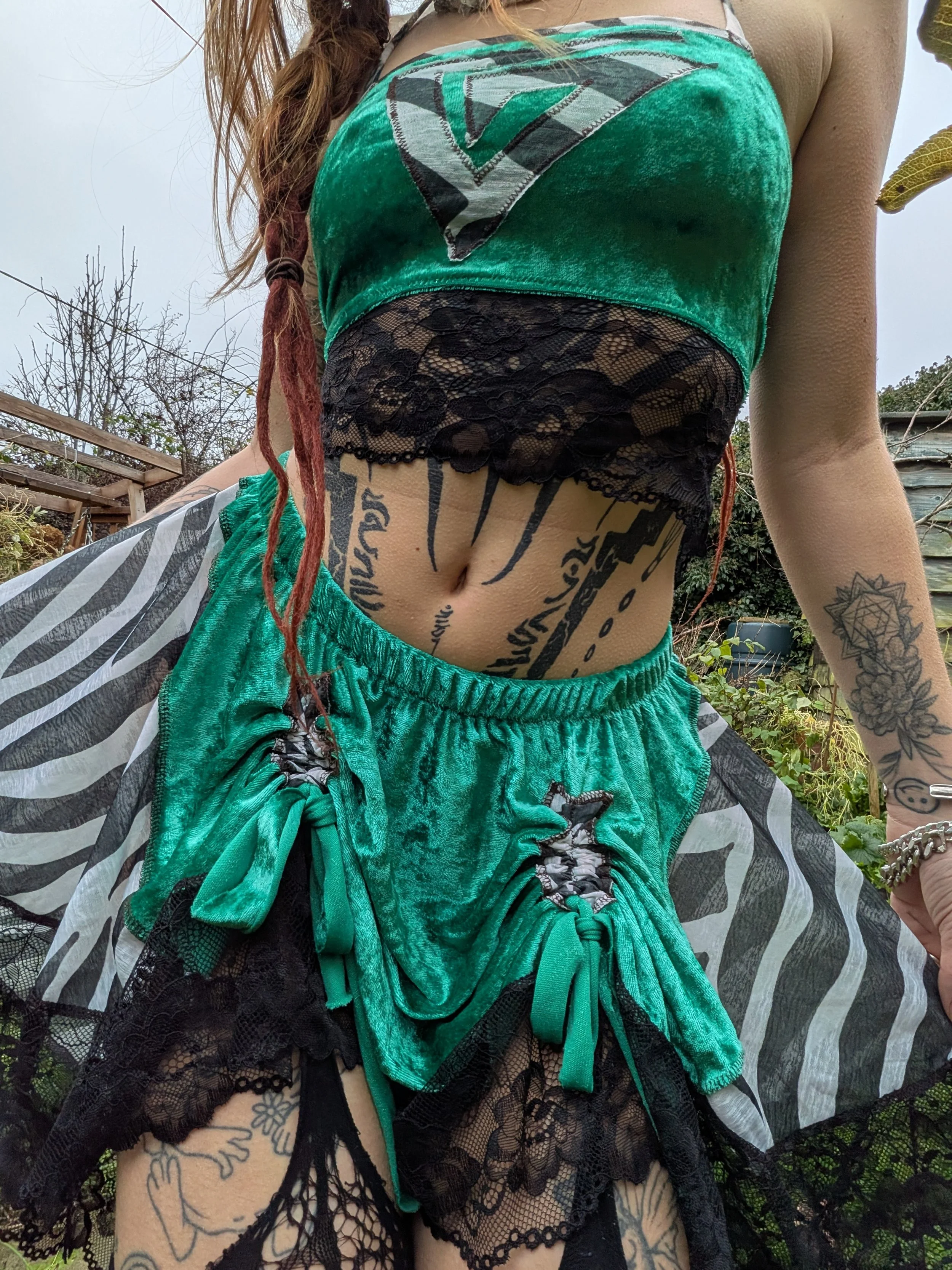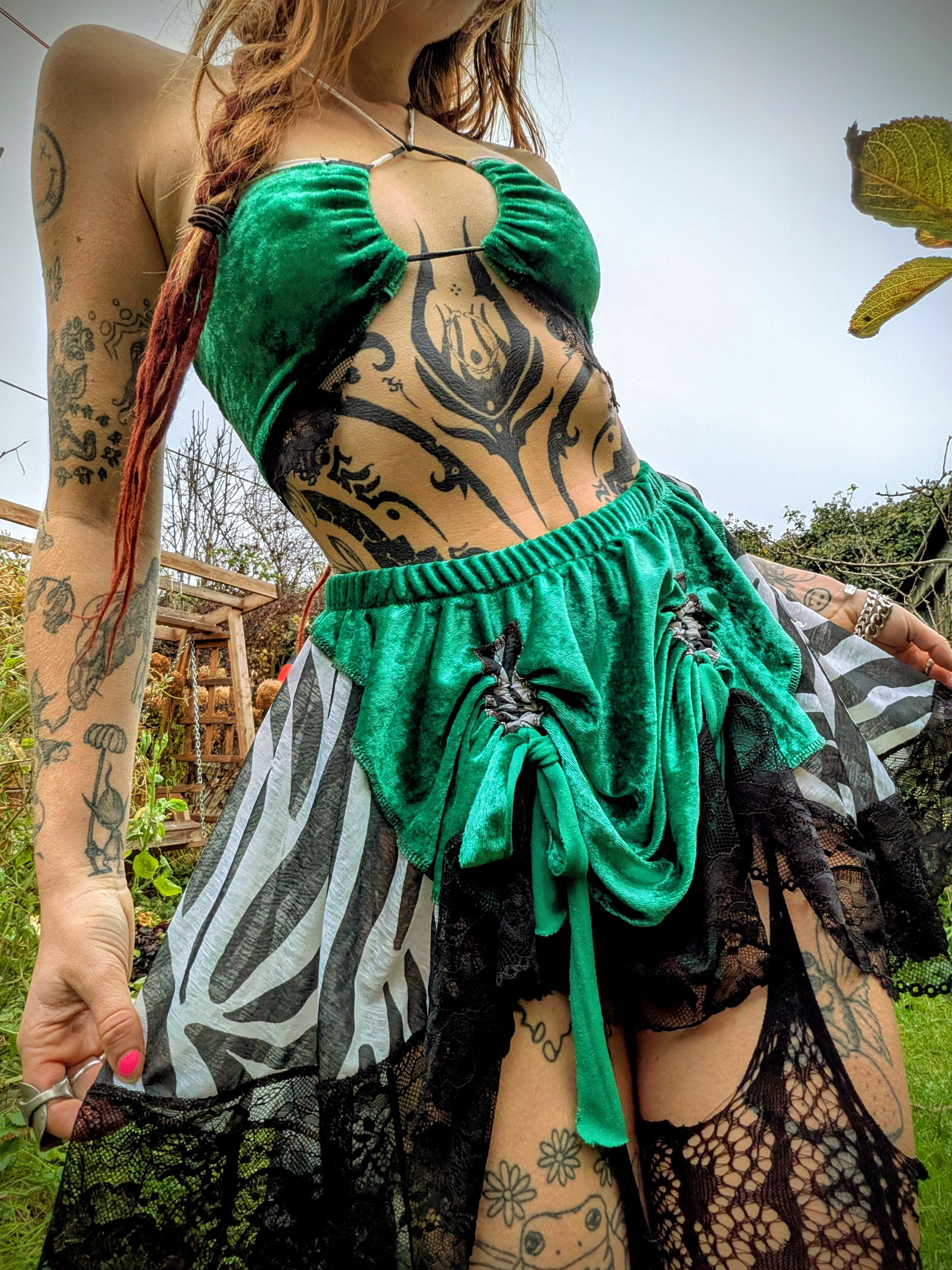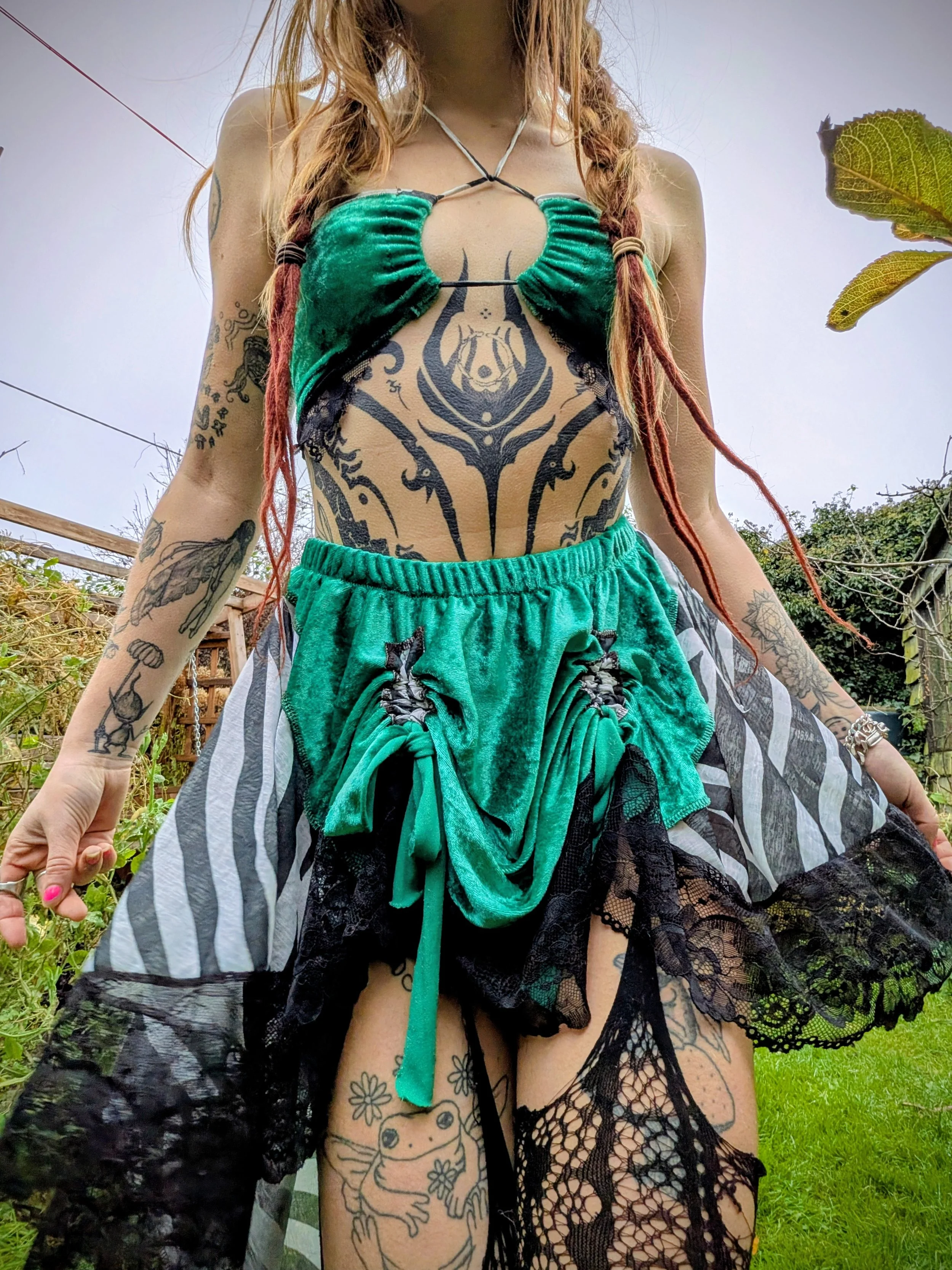 🍄 Top fits xs-m. However, if you are a M or have larger chest the lace up side will need to be at the back!
