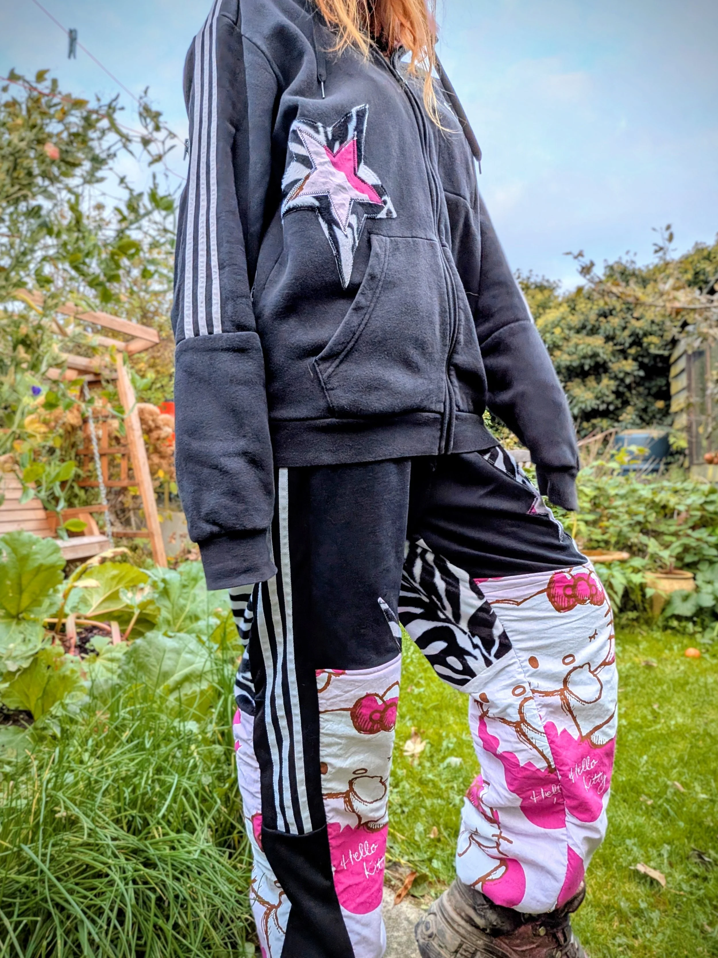 Made from genuine Adidas & hello kitty upcycled fabrics